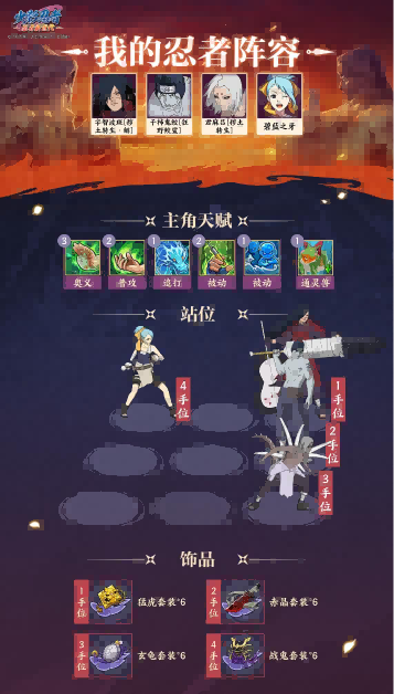 3、选择后攻阵营时,可选择2个能保证小队忍者生存的忍者,搭配2个输出能力较强的忍者;
