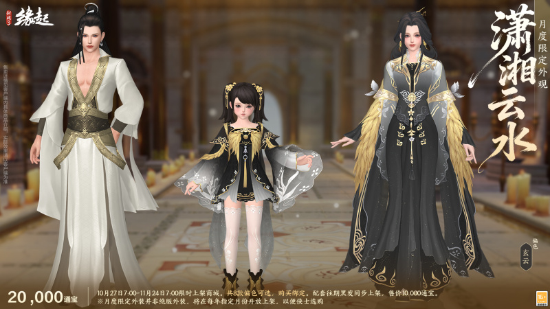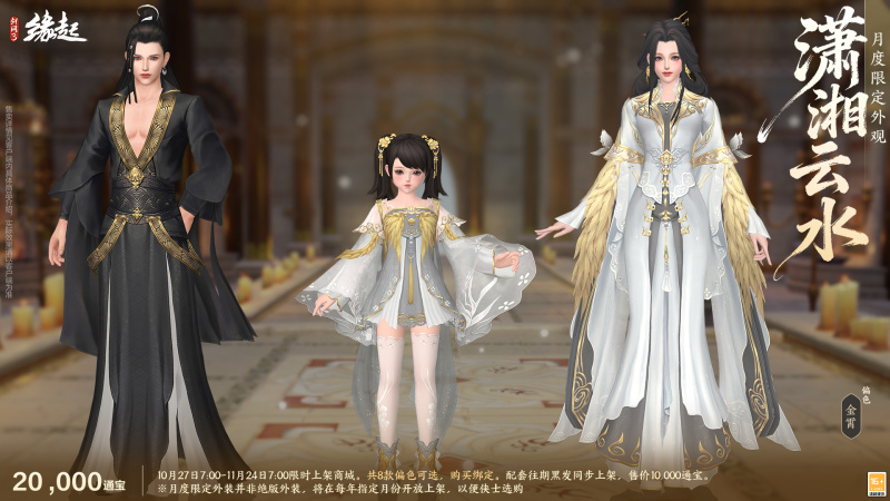 豪华版礼盒内含成衣+定制黑发+定制白发,售价38,000通宝,不绑定款10月27日20:09限量上架500份。
