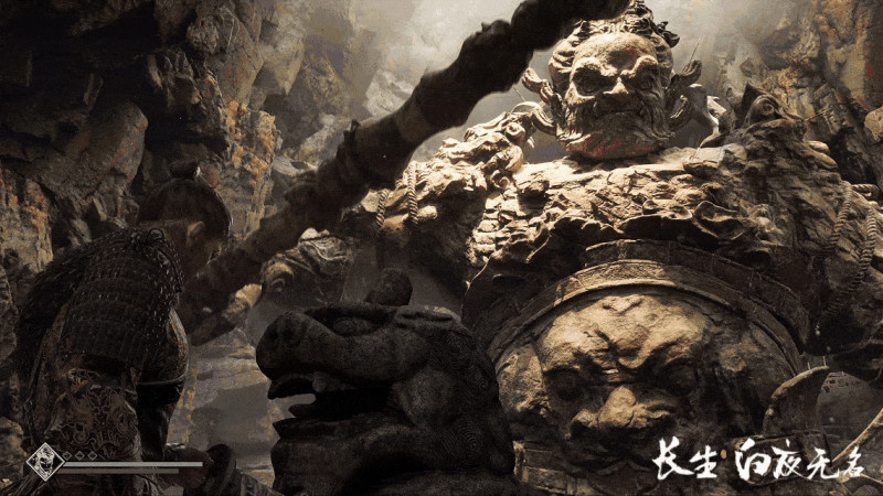 从预告片的第一观感来看,本作的开发规格相当之高,不论是整体光影表现,植被的密度,Boss战中双方脚下水体的物理效果,佛窟塑像等场景中建模的精细程度,还是“石像解谜”场景中表现出的巨物移动、攻击时的动态效果与场景破坏效果都相当惊人,体现出了寻常制作组难以驾驭的高复杂度、高动态场景的搭建能力。
